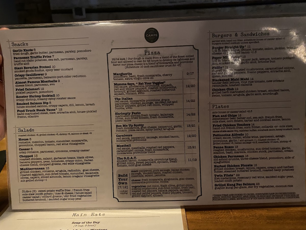 The ambiance is lively, with outstanding service to match. Try the goat cheese pizza or fish and chips for a delicious experience. Whether for a casual meal or a family outing, Camps Kitchen and Bar captivates with its friendly atmosphere and fantastic food!